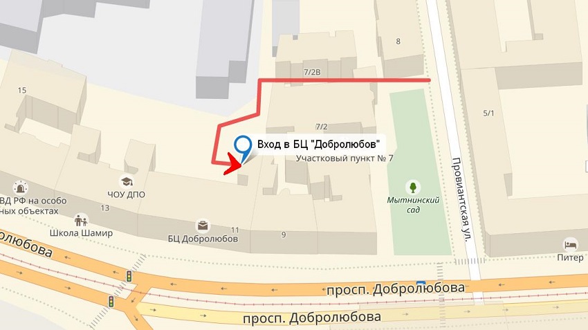 В период ремонтных работ проход в бизнец-центр будет осуществляться со стороны ул. Провиантская, через уличный турникет у входа во внутренний двор БЦ "Добролюбов".