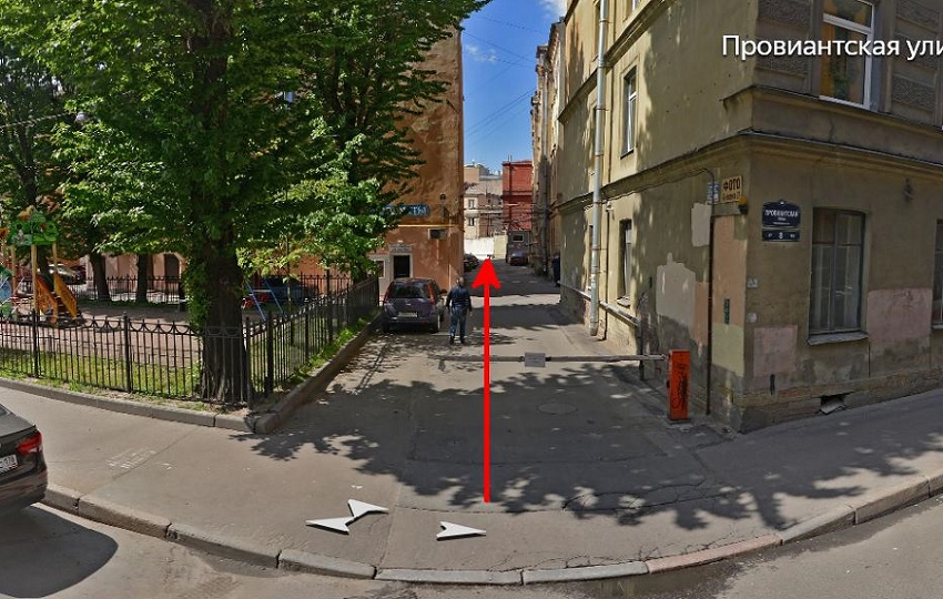 Вход с Провиантской улицы через шлагбаум выглядит следующим образом:
